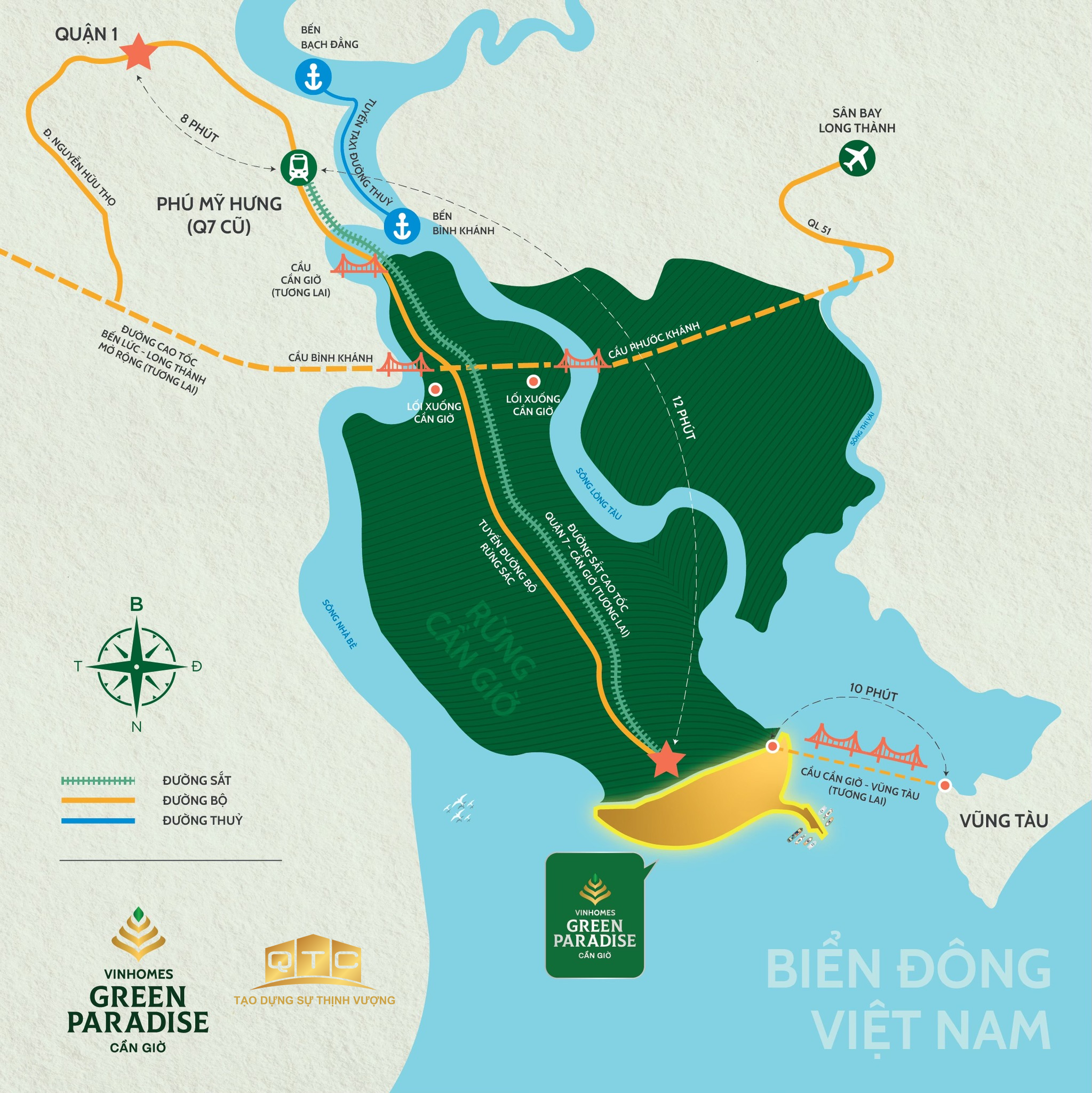 Green Paradise nằm tại khu vực có khả năng kết nối ấn tượng, đặc biệt khi metro tốc độ cao chính thức vận hành. Từ trung tâm thành phố, cư dân chỉ mất hơn 10 phút để đến vùng sinh thái rộng lớn của Cần Giờ, tạo nên sự cân bằng hiếm có giữa sống – làm việc – nghỉ dưỡng.