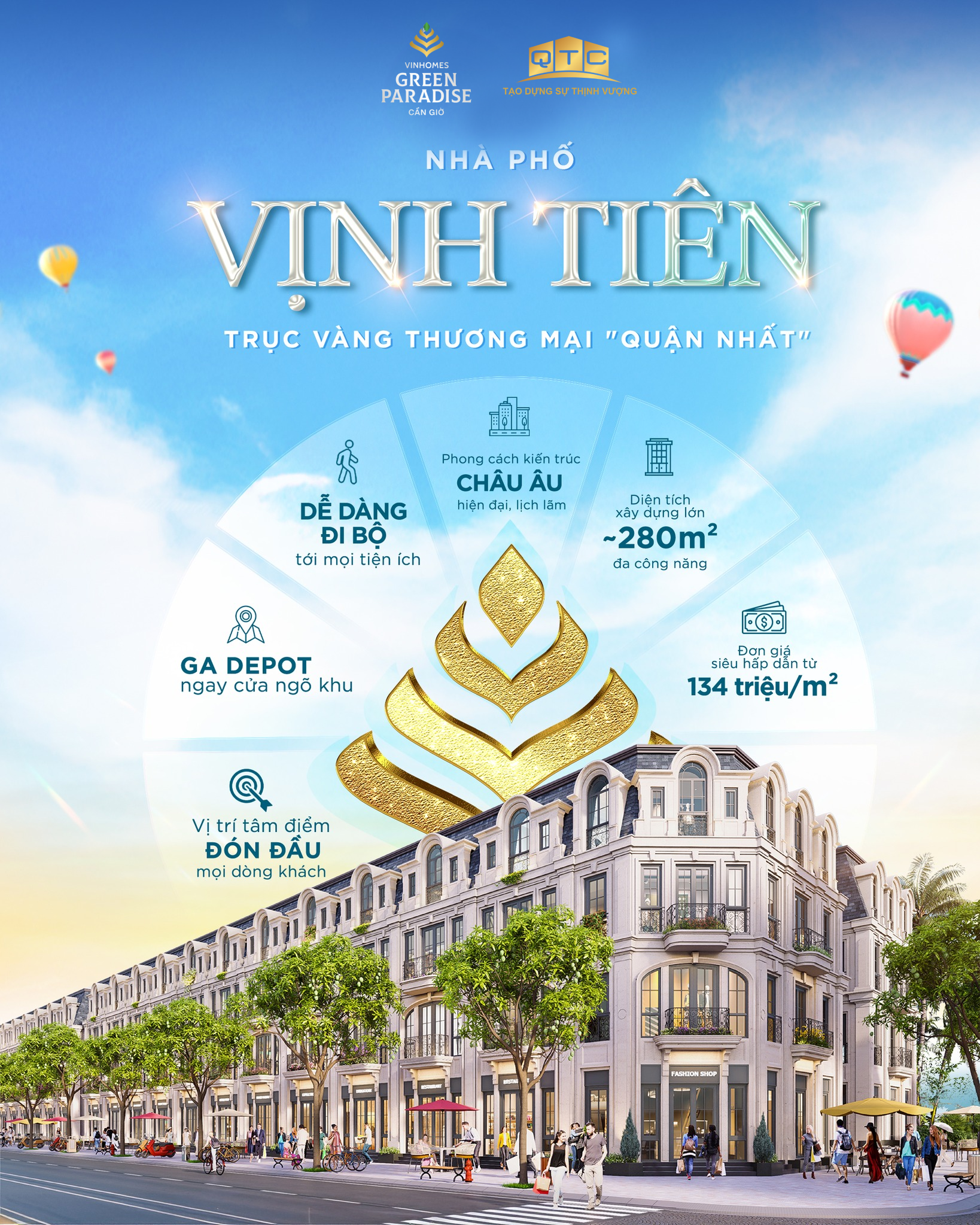 Là đơn vị tư vấn và phân phối bất động sản chuyên nghiệp, QTC Land tự hào đồng hành cùng khách hàng trong hành trình sở hữu những sản phẩm tinh hoa tại Vinhomes Green Paradise, đặc biệt là phân khu trung tâm Vịnh Tiên.